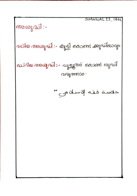 വലിയ അശുദ്ധി കൊണ്ട് ഹറാം ആകുന്ന കാര്യങ്ങൾ