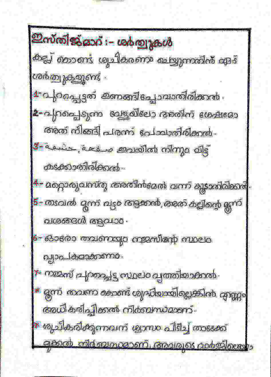 ഇസ്തിന്ജാഅ ശർത്തുകൾ