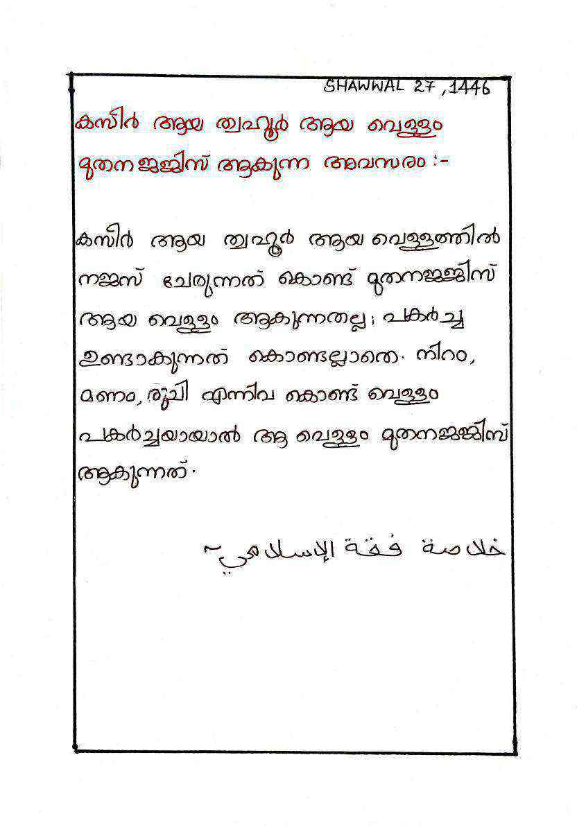 ത്വഹൂർ ആയ ഖലീൽ ആയ വെള്ളം മുത്തനജ്‌ജിസ് ആകുന്ന അവസരം ⟶