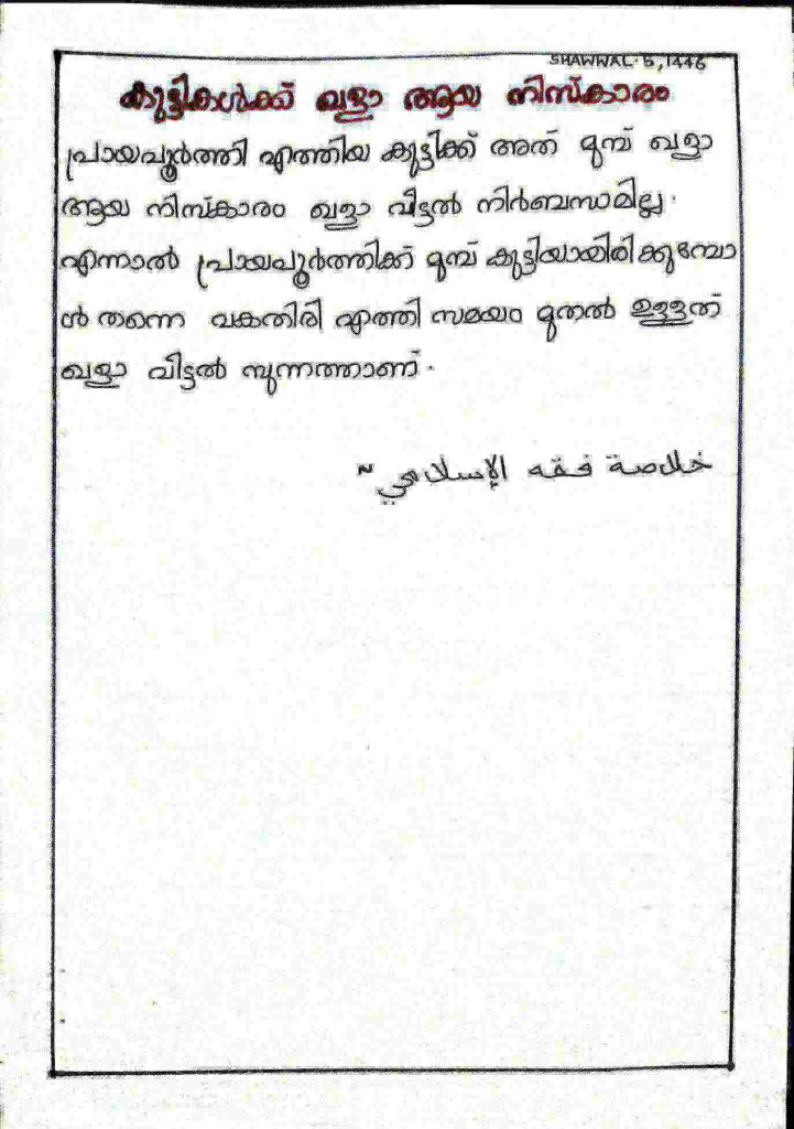 കുട്ടികള്ക്ക് ഖളാ ആയ നിസ്കാരം കുട്ടികള്ക്ക് ഖളാ ആയ നിസ്കാരം Fathima Zahra BahiraApril 6, 2025April 6, 2025