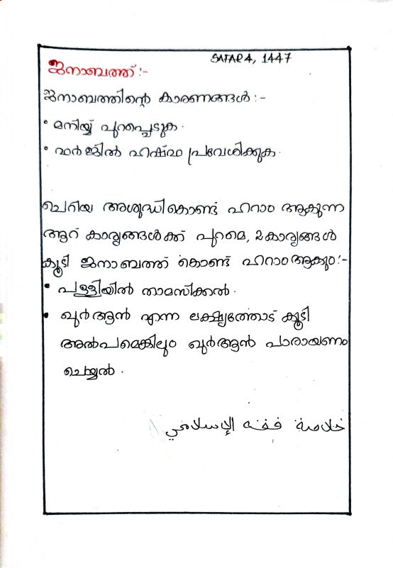ചെറിയ അശുദ്ധി കൊണ്ട് ഹറാം ആകുന്ന കാര്യങ്ങൾ