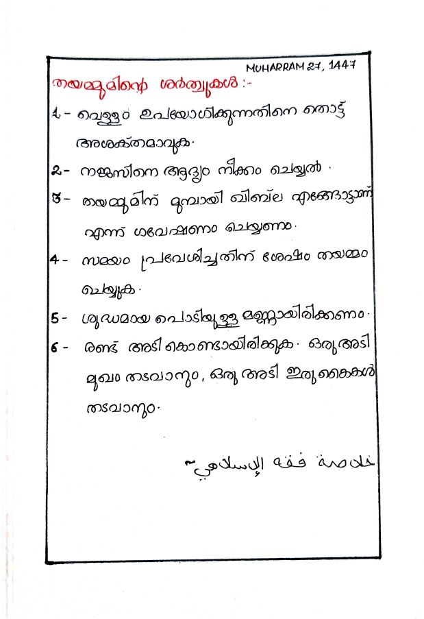 തയമ്മുമിൻെറ ശർത്തുകൾ