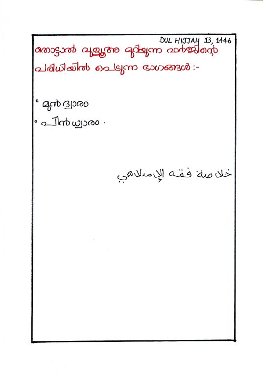 Uncategorized തൊട്ടാൽ വുളൂ മുറിയുന്ന ഫർജിന്റെ പരിധിയിൽ പെടുന്ന ഭാഗങ്ങൾ Fathima Zahra BahiraJune 8, 2025June 10, 2025
