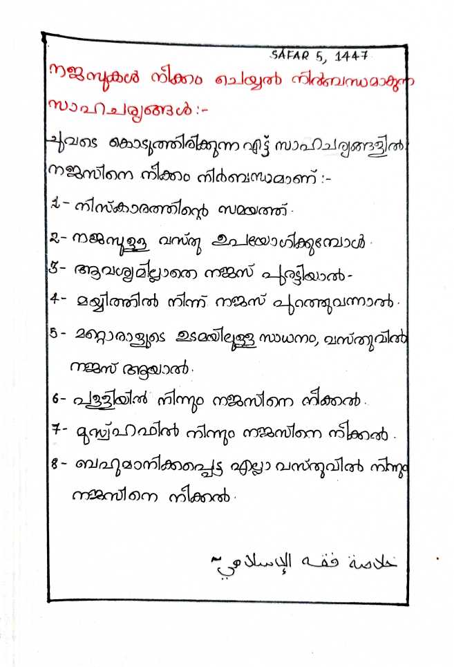 നജസുകൾ നീക്കം ചെയ്യൽ നിർബന്ധമാകുന്ന സാഹചര്യങ്ങൾ