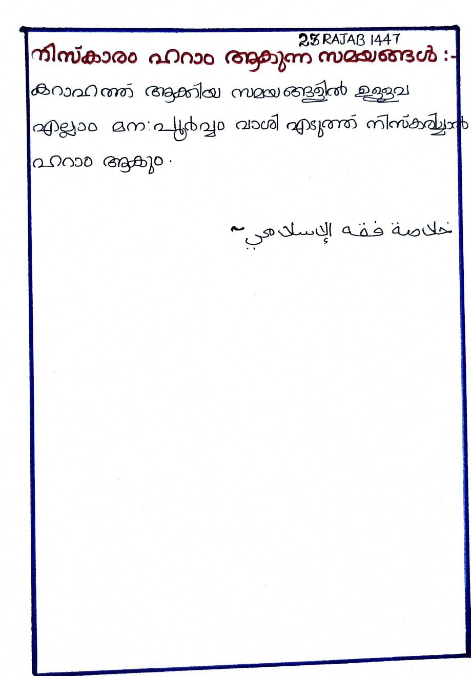 നിസ്കാരം കറാഹത്ത് ആകുന്ന അവസരം