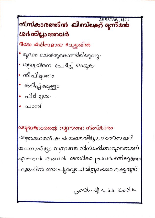 വാഹനത്തിൽ ഇരുന്ന് സുന്നത്ത് നിസ്കാരം നിര്‍വ്വഹിക്കുന്ന രൂപം ⟶