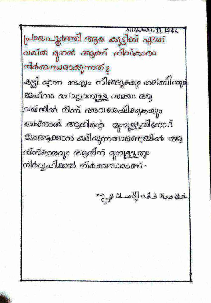 Uncategorized പ്രായപൂര്ത്തി ആയ കുട്ടിക്ക് ഏത് വഖ്ത് മുതല് ആണ് നിസ്കാരം നിര്ബന്ധം ആകുന്നത്? Fathima Zahra BahiraApril 11, 2025April 11, 2025 പ്രായപൂര്ത്തി ആയ കുട്ടിക്ക് ഏത് വഖ്ത് മുതല് ആണ് നിസ്കാരം നിര്ബന്ധം ആകുന്നത്?