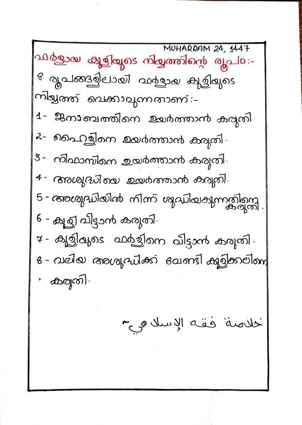 ഫർളായ കുളിയുടെ നിയ്യത്തിന്റെ രൂപം