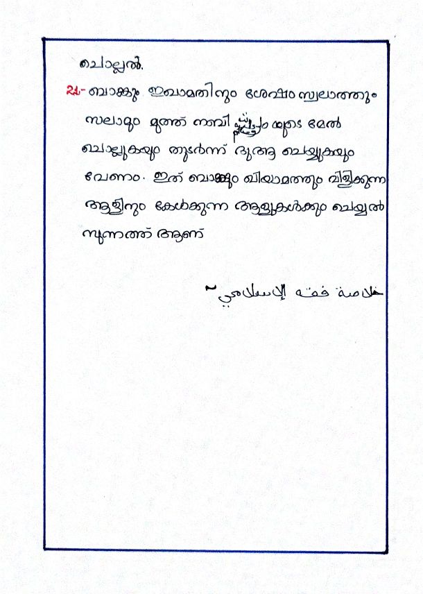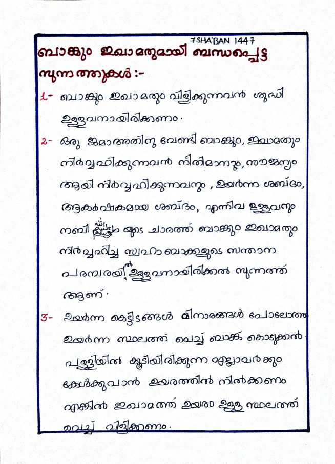 ⟵ ബാങ്ക് കേള്‍ക്കുന്നവനു പാലിക്കേണ്ട മര്യാദകള്‍