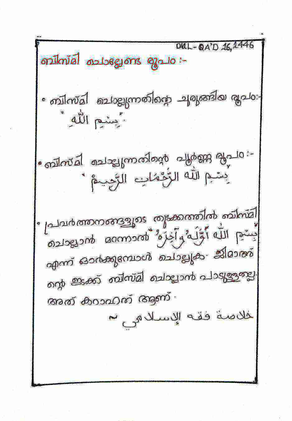 ബിസ്മി ചൊല്ലേണ്ട രൂപം