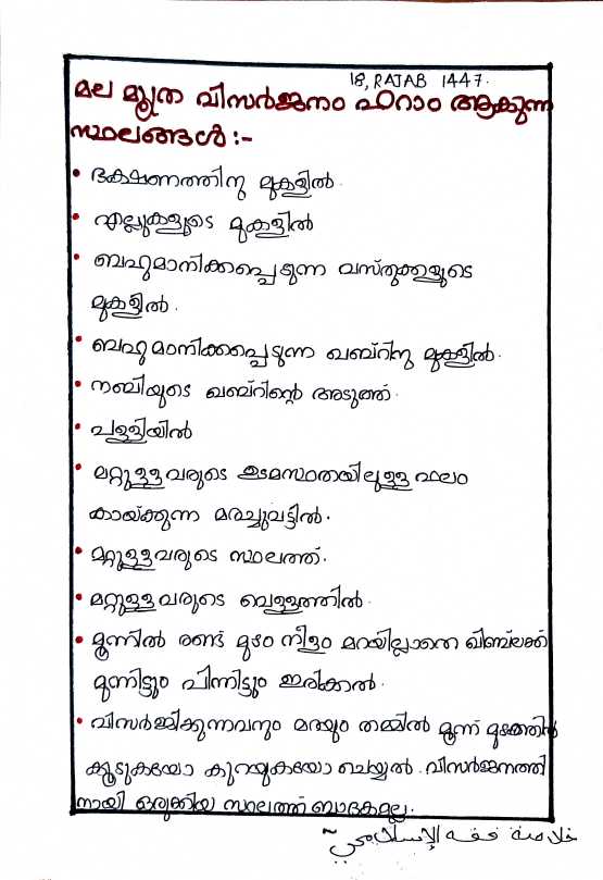Uncategorized മലമൂത്ര വിസര്ജ്ജനം ഹാരാം ആകുന്ന സ്ഥലങ്ങള് Fathima Zahra BahiraJanuary 8, 2026January 11, 2026