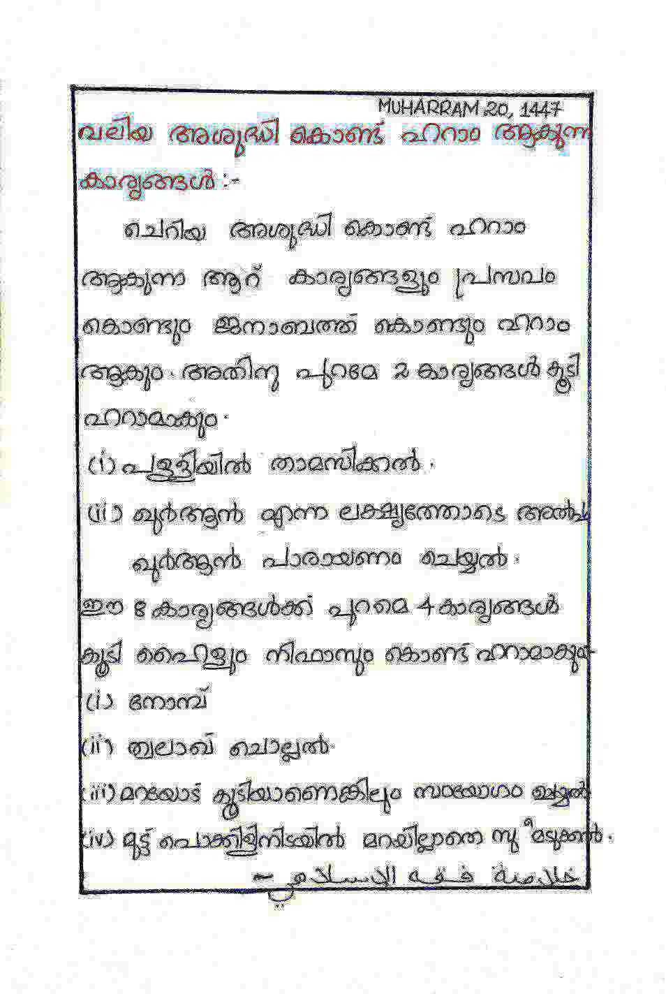 Uncategorized വലിയ അശുദ്ധി കൊണ്ട് ഹറാം ആകുന്ന കാര്യങ്ങൾ Fathima Zahra BahiraJuly 16, 2025July 19, 2025