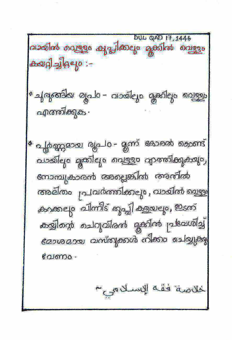 Uncategorized വായിൽ വെള്ളം കുപ്ലിക്കലും മൂക്കിൽ വെള്ളം കയറ്റിച്ചീറ്റലും Fathima Zahra BahiraMay 16, 2025January 28, 2026 ചുരുങ്ങിയതും പൂർണമായതുമായ രൂപം
