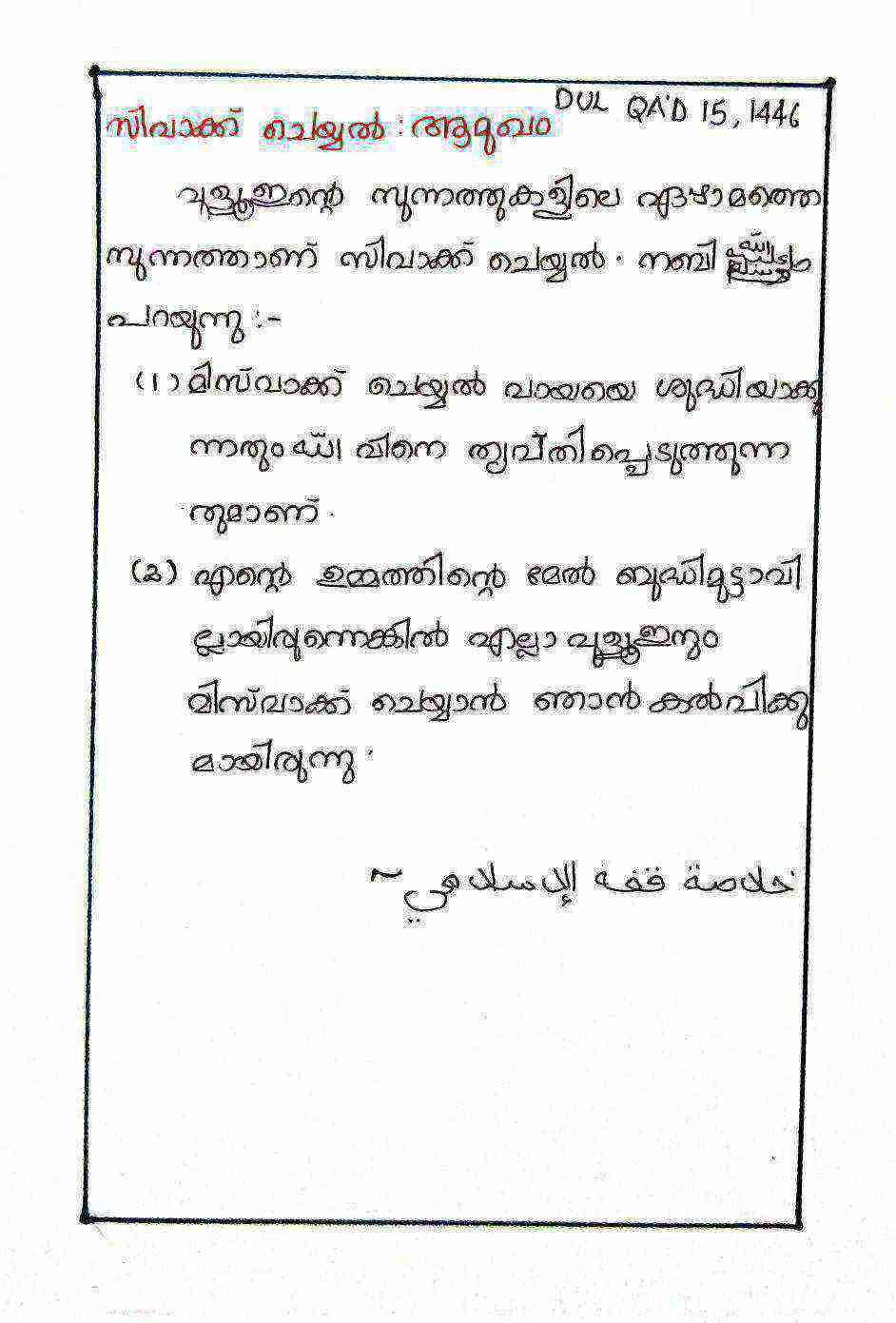 സിവാക്ക് കറാഹത്ത് ഉള്ള അവസരം