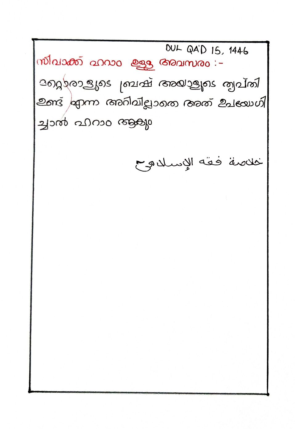 സിവാക്ക് ഹറാം ഉള്ള അവസരം