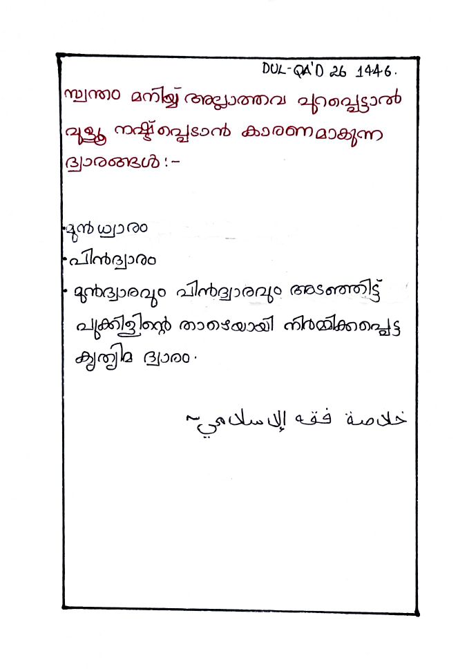 സ്വന്തം മനിയല്ലാത്തവ പുറപ്പെട്ടാൽ വുളൂ നഷ്ട്ടപ്പെടാൻ കാരണമാകുന്ന ദ്വാരങ്ങൾ