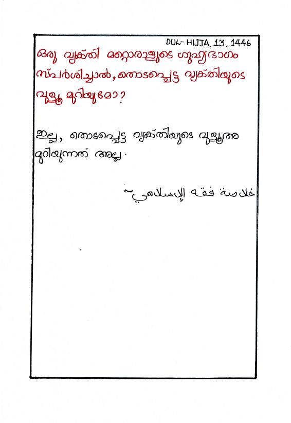 ⟵ തൊട്ടാൽ വുളൂ മുറിയുന്ന ഫർജിന്റെ പരിധിയിൽ പെടുന്ന ഭാഗങ്ങൾ